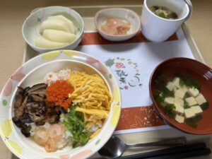 お食事には、敬老の日の特別メニューとして「彩りちらし寿司」をご提供🍣