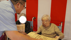 100歳を迎えられる方には、国からのお祝い状と銀杯をお渡しするとともに、100歳&101歳の皆さんで記念撮影も📸✨