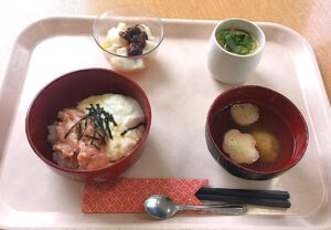 また、本日の昼食はお正月ということで、ちょっと豪華に山かけネギトロ丼と茶碗蒸しです。