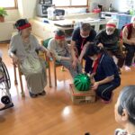 →最後の花形競技✨30秒でかごに何個ボールか入るかを競います。入居者の皆さまが白熱される競技で、立ち上がったり、前のめりになったり、ボールを拾い歩いたり・・・スタッフにとっては事故防止のため気を抜けない30秒となります💦1回戦は紅組の勝ち!2回戦は白組に勝ってもらう為、スタッフも燃えます(笑)