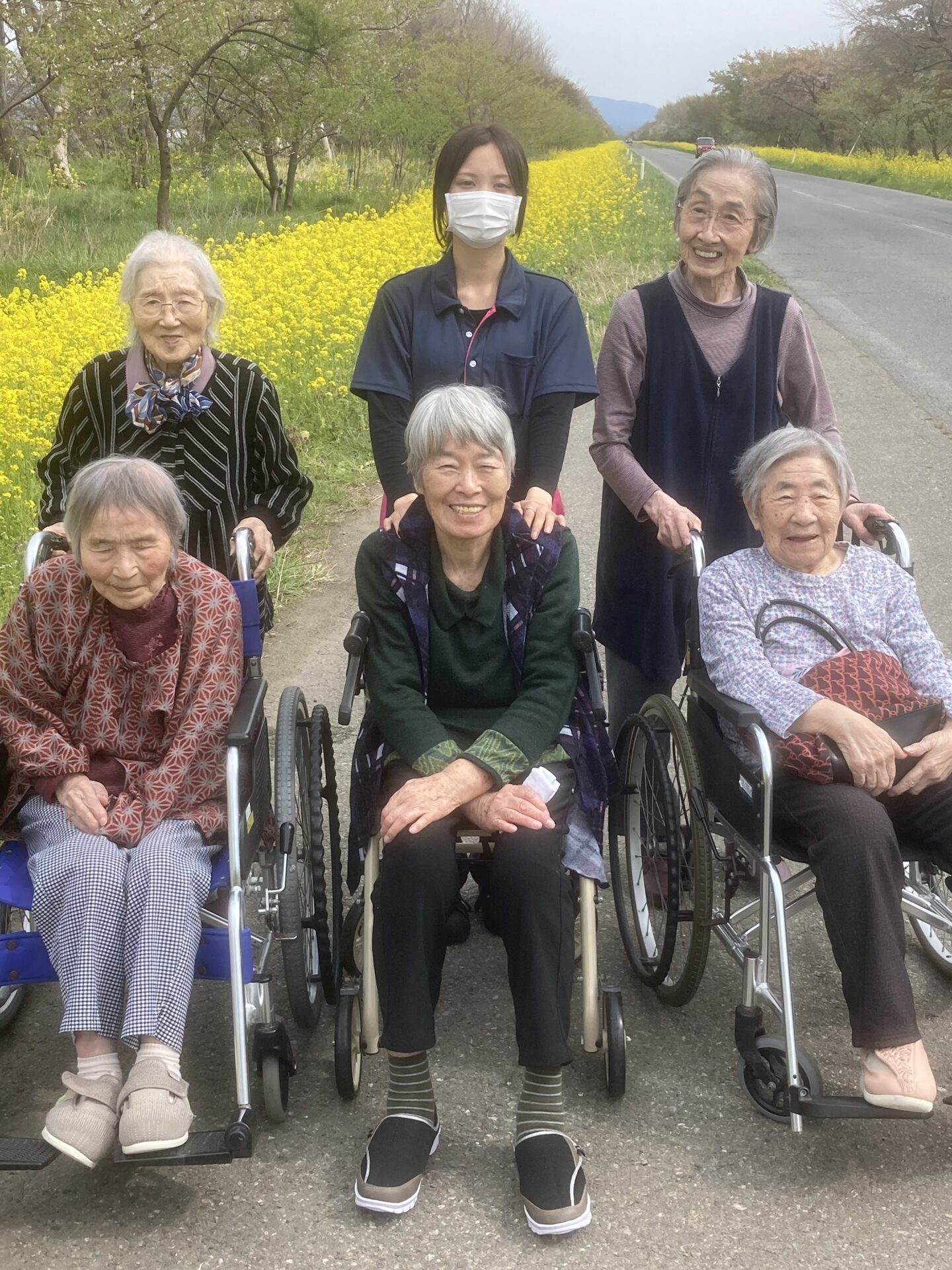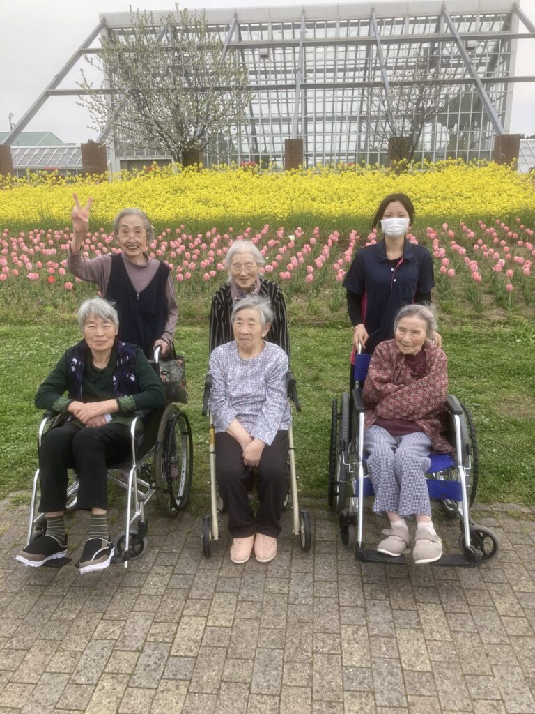桜は散っていますが、菜の花やチューリップなど色とりどりの花をご覧になり、みなさま