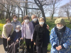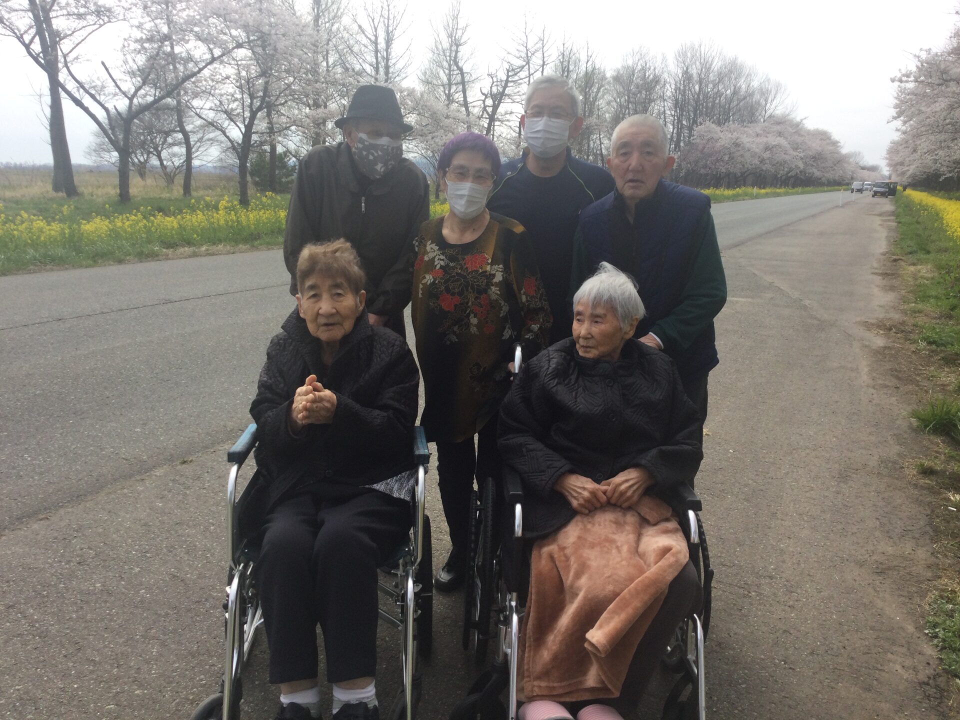 毎年ショートステイげんきでは大潟村の菜の花ロードにお花見にドライブに行っています。