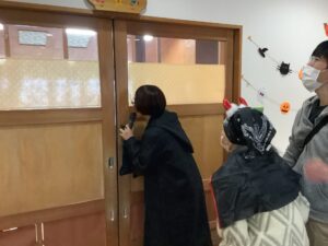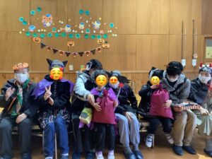 本日、🎃ハロウィン🎃ということで、入居者の皆様には馴染みが無いため、子供たちにお菓子をプレゼントしに行きましょう!ということで、ドキドキ💕わくわく💕の入居者の皆様。
